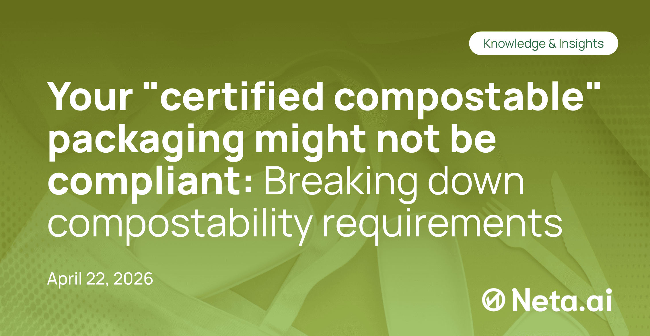 At Neta AI, our proprietary AI agent parses compostability requirements across state and local regulations, maps them to the specific certification standards each jurisdiction accepts, and flags mismatches between a regulation's language and a supplier's certification claims. Instead of piecing this together manually across disparate ordinances, your team gets targeted alerts with clear context on what the regulation requires and whether your packaging portfolio meets it. If you want to see how Neta AI can close the gaps in your compostable packaging compliance, reach out. We'd love to walk you through it.